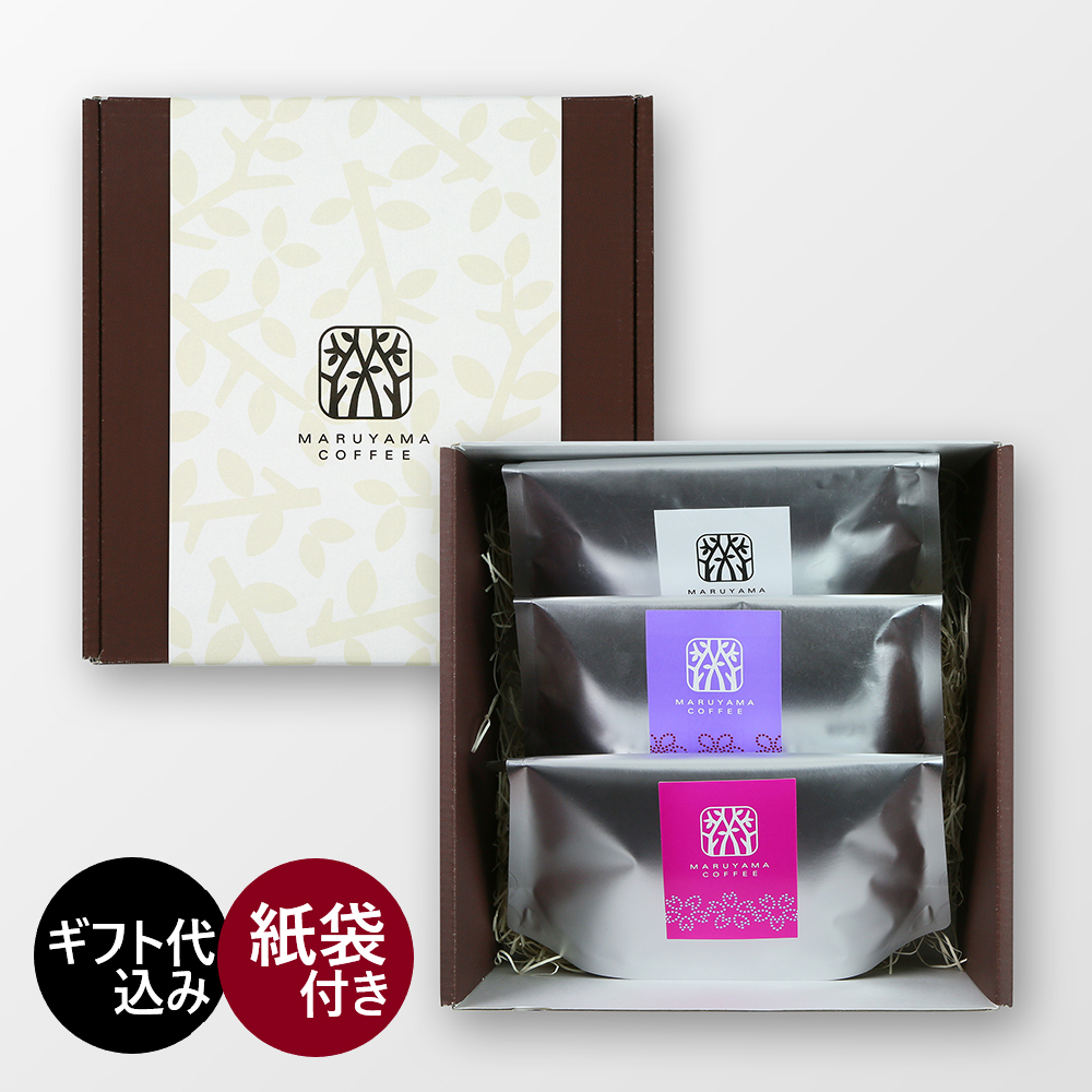 丸山珈琲のセレクトしたコーヒー3種類と、「コーヒーロールラングドシャ」を詰め合わせたギフトです。