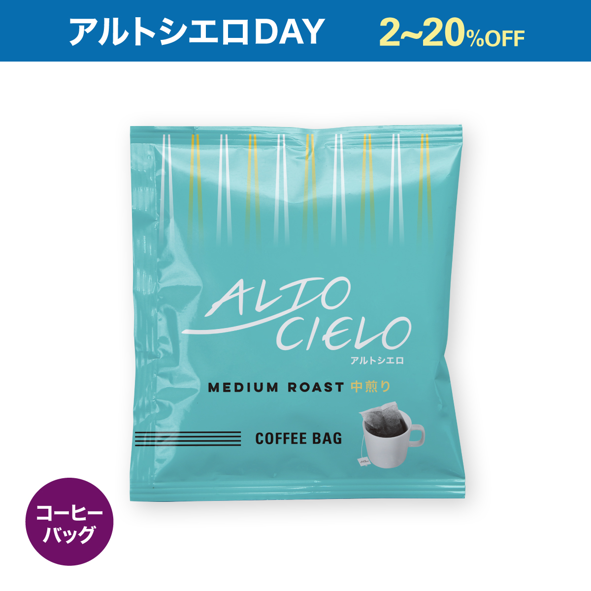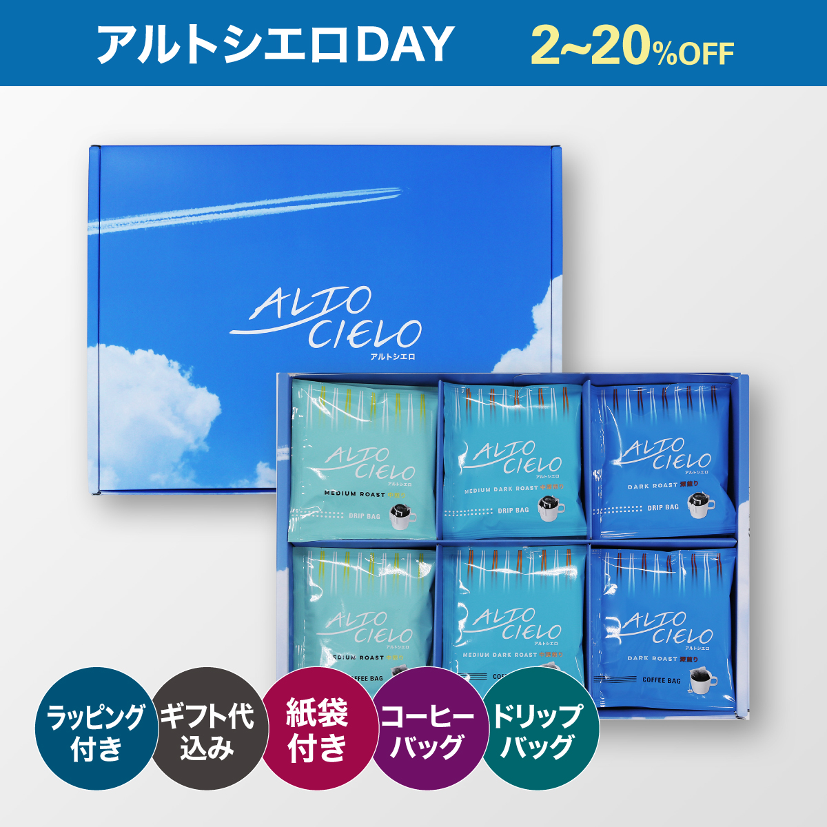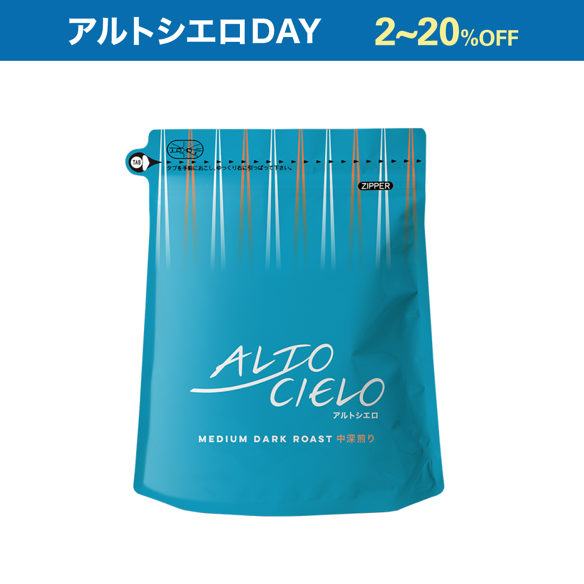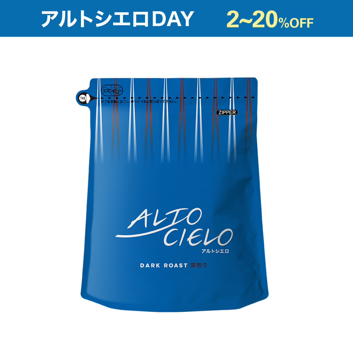 「コーヒー生産地の高く、広く、青い空のように、ゆったりとした時間の流れの中でおいしいコーヒーを召し上がってほしい」という想いを込めた新ブランド『ALTO CIELO』(アルトシエロ)をアルトシエロDAY特別価格でご用意しました。