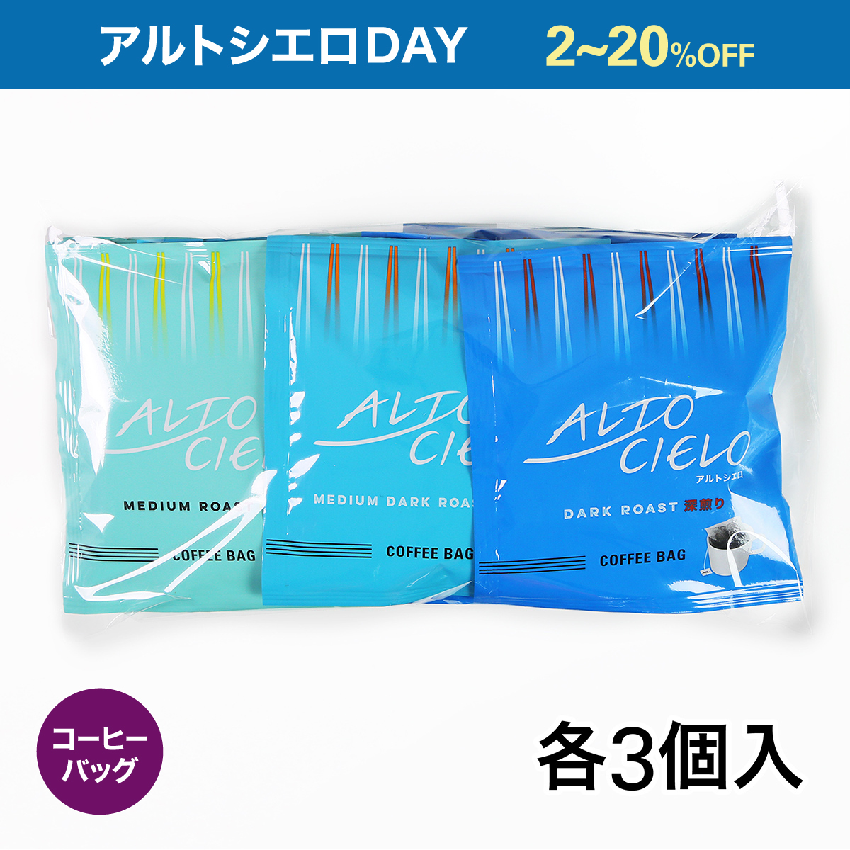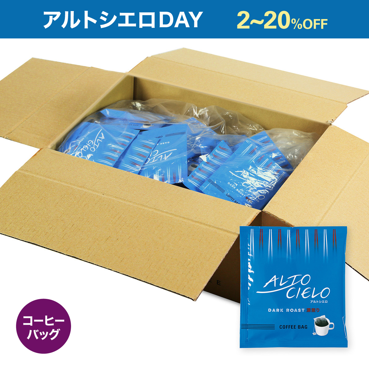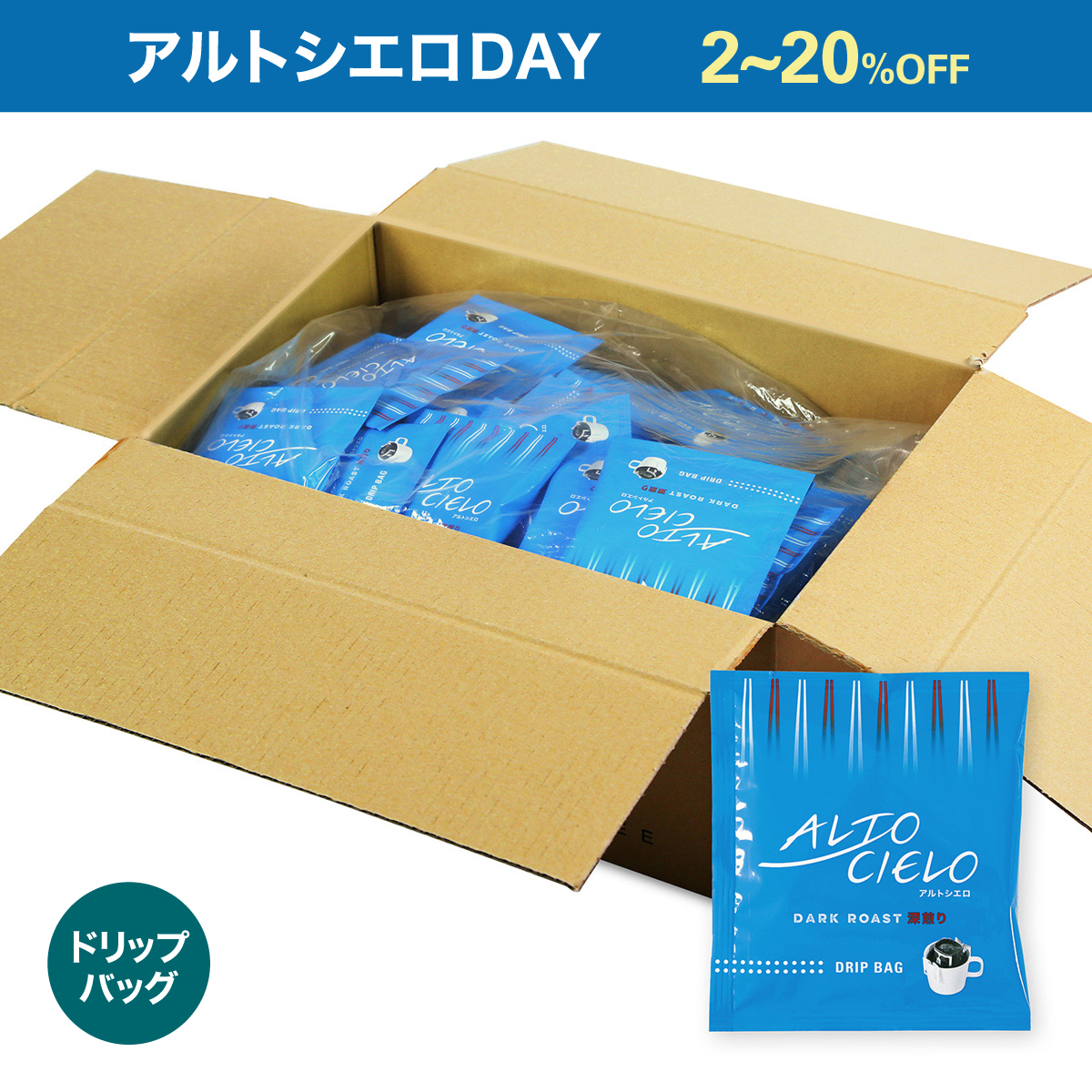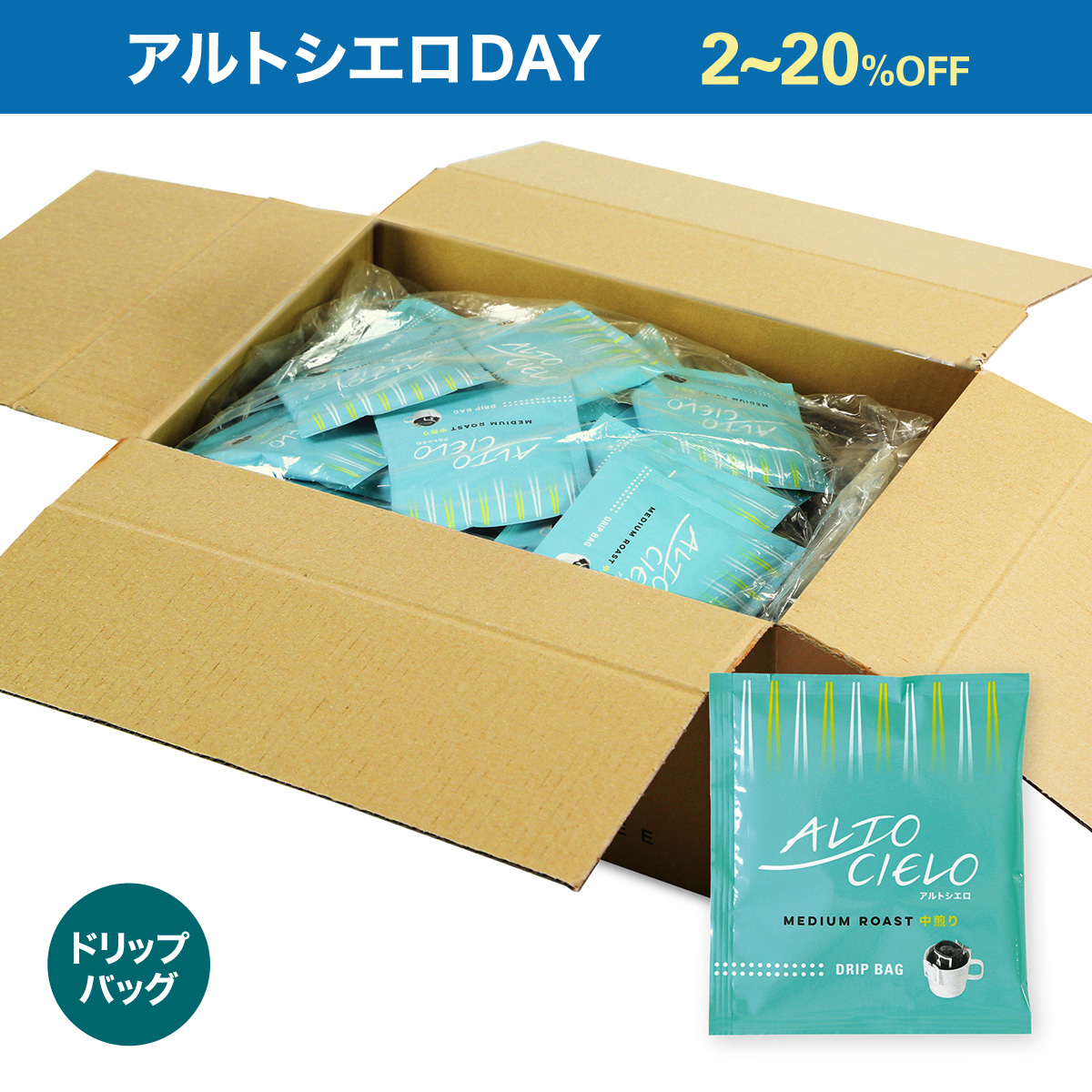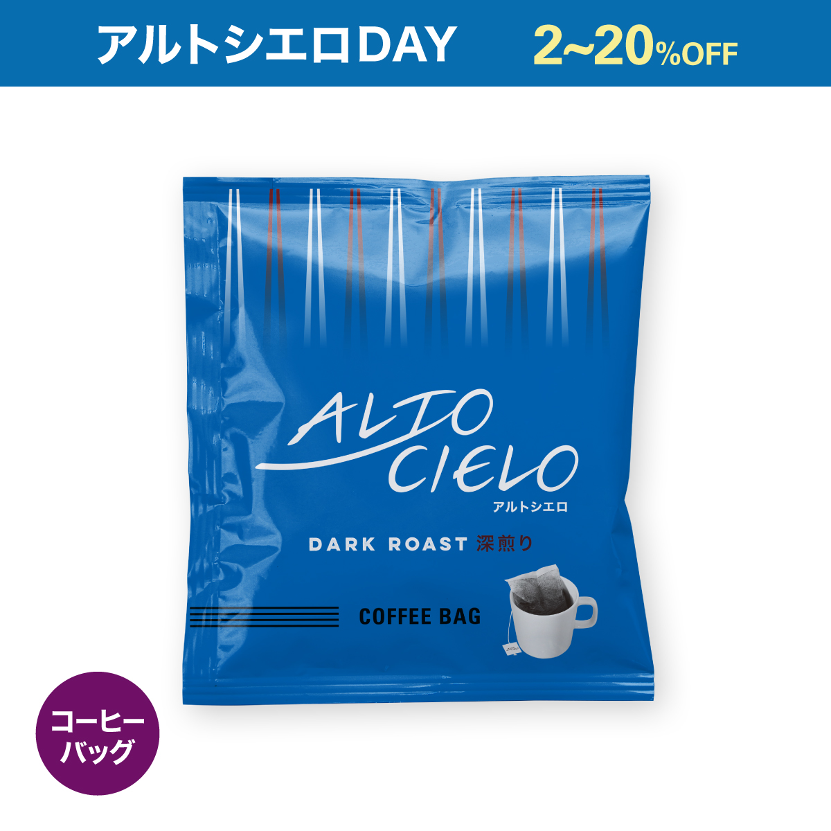 「コーヒー生産地の高く、広く、青い空のように、ゆったりとした時間の流れの中でおいしいコーヒーを召し上がってほしい」という想いを込めた新ブランド『ALTO CIELO』(アルトシエロ)をアルトシエロDAY特別価格でご用意しました。