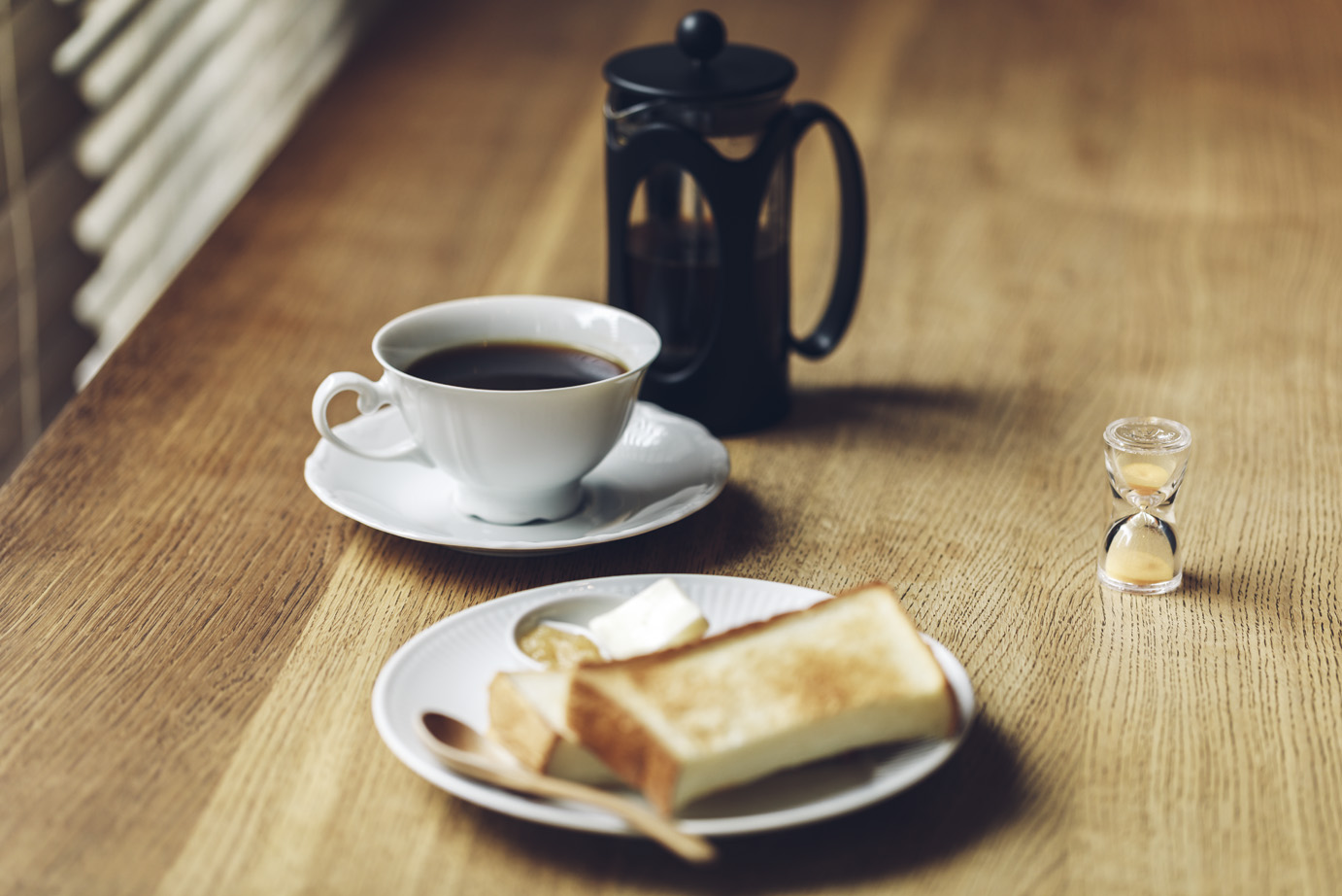 眠気が覚めない朝や始業時、仕事の会議前にはさっぱりとした味わいで元気にさせてくれる浅煎りのコーヒーを机のかたわらに。夜のおやすみ前はカフェインレスコーヒーで1日の疲れを癒すひとときに。