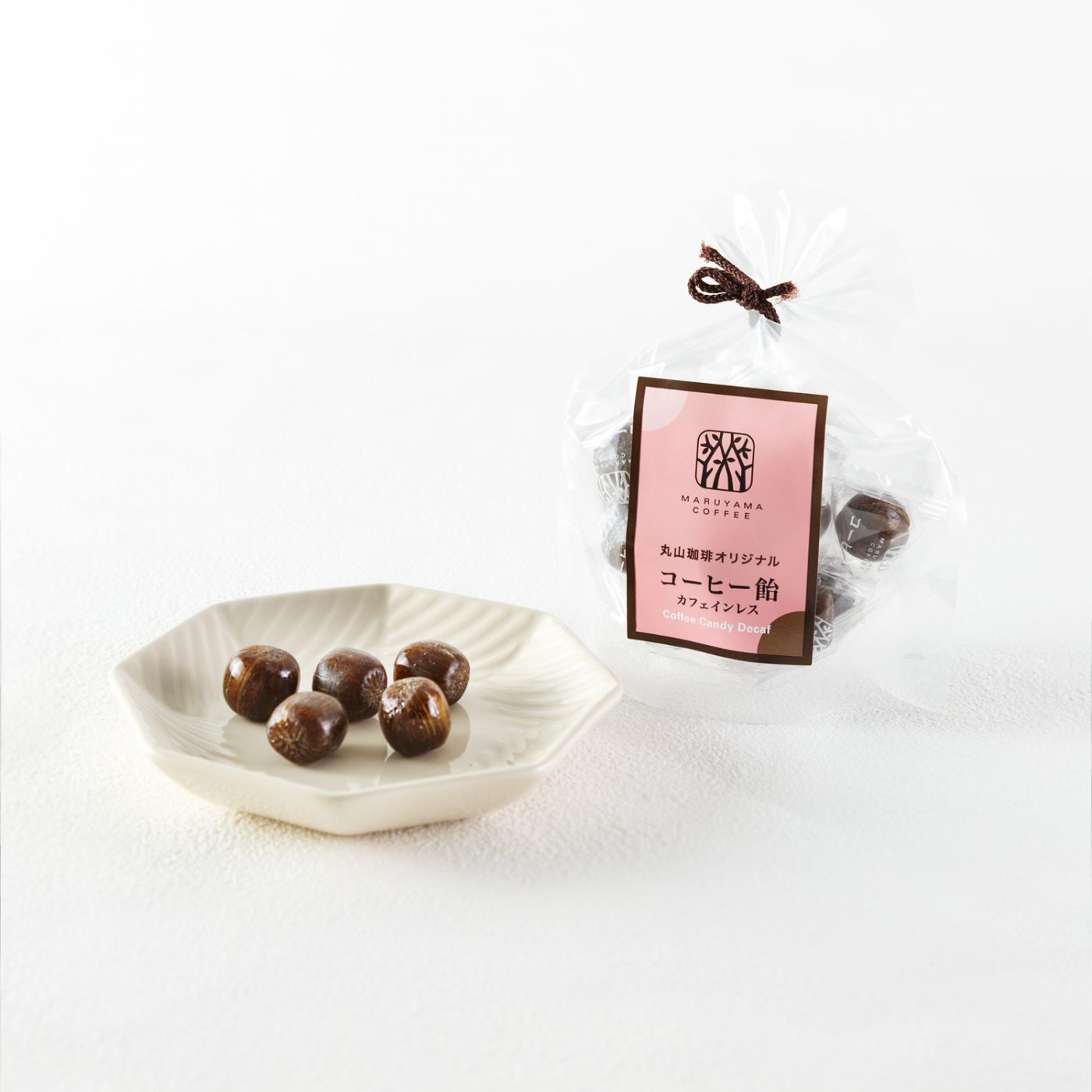 丸山珈琲のカフェインレスコーヒーを使用した、直火炊き製法でじっくり炊き上げた手作り飴。添加物、着色料、香料不使用、カフェインレス。