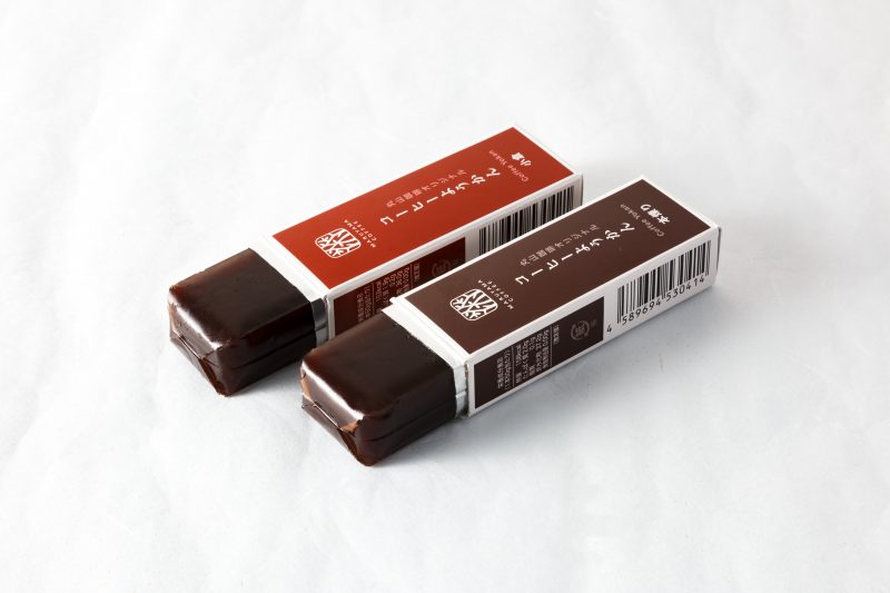 丸山珈琲のコーヒーようかんは 2 種類の味わいがあります。「本煉り」は、口あたりなめらか、口に含むとあんこの風味が広がり、ふんわりとコーヒーの風味の余韻を感じるようかんを目指しました。一方の「小倉」は、本煉りようかんと同じ味わいに小豆の食感を添えつつ、小豆本来の味わいが引き立つようかんを目指しました。