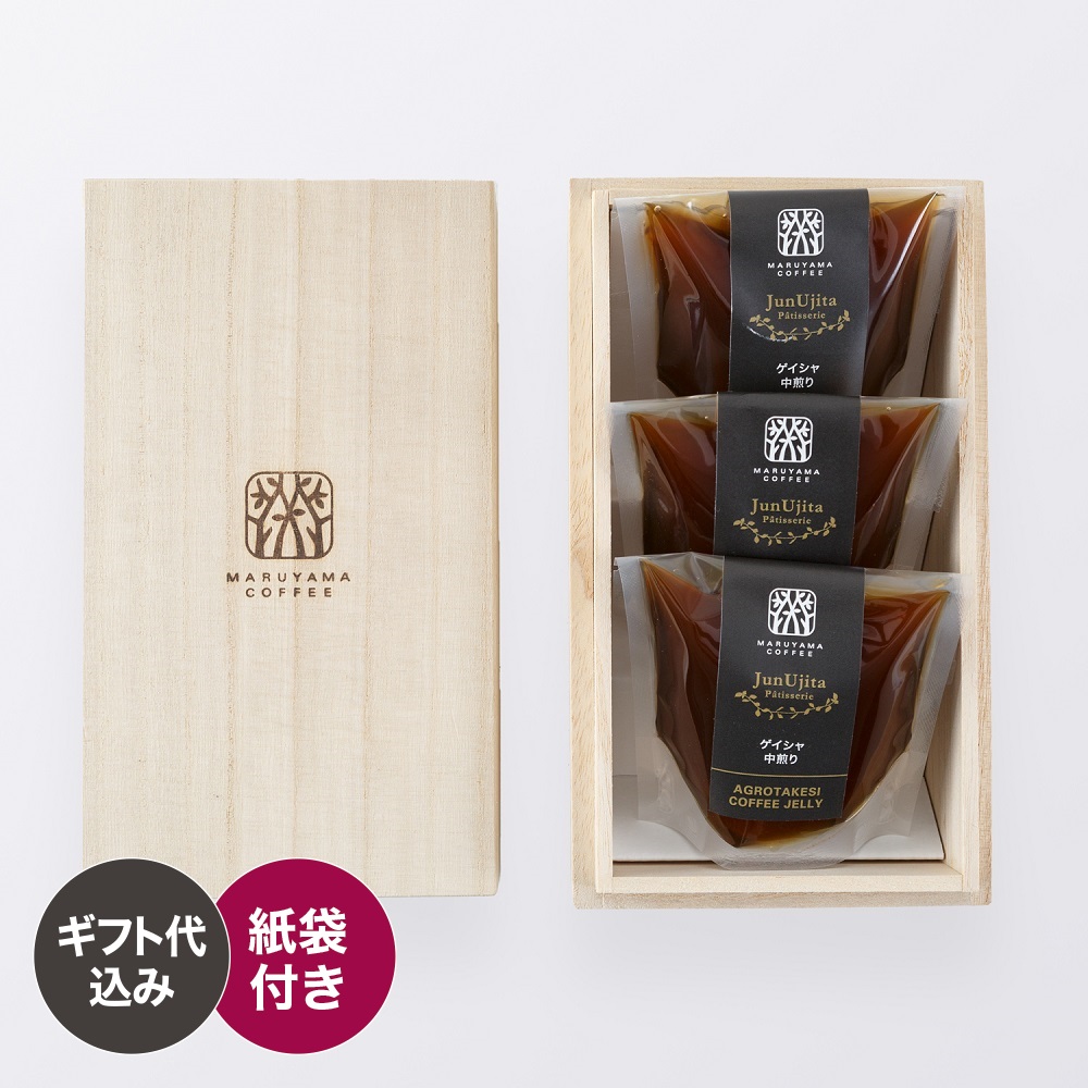 圧倒的な透明感と迫力を感じる、高品質コーヒーであるアグロタケシゲイシャを存分に使用して作られたゼリーは、普段口にすることは難しく、まさに大人のご褒美にピッタリ。3個入。