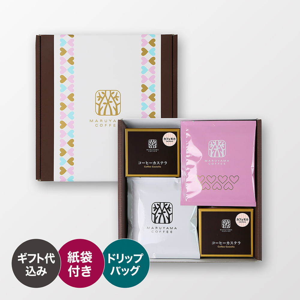 この時期だけのオリジナルカフェモカカステラと、本格コーヒーが手軽に楽しめるドリップバッグのセットです。