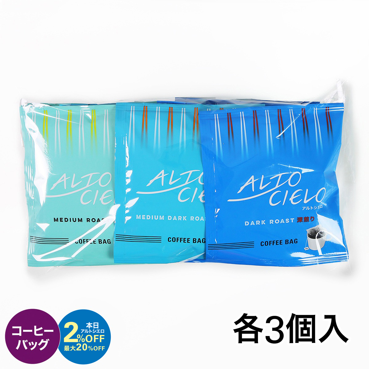丸山珈琲の新ブランド「アルトシエロ」の焙煎度違いのコーヒーバッグ3種類を詰め合わせました。(各種5個 合計15個)