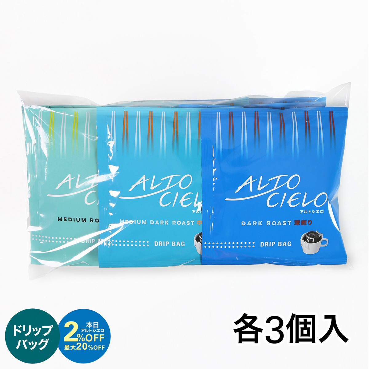 丸山珈琲の新ブランド「アルトシエロ」の焙煎度違いのドリップバッグ3種類を詰め合わせました。(各種5個 合計15個)