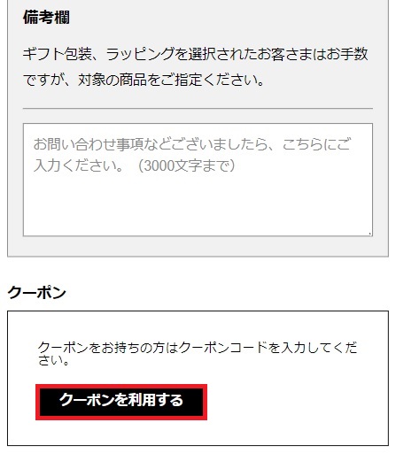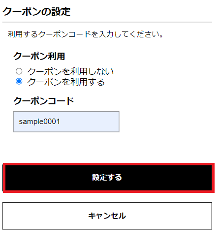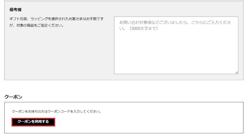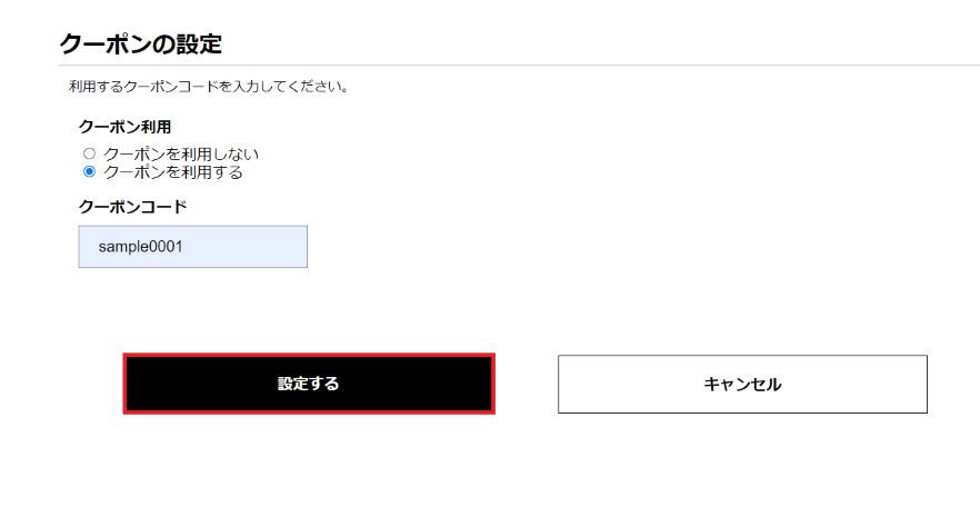 ・下部に表示されるご利用可能クーポンの一覧にクーポンが表示されている場合、利用するクーポンの「利用する」ボタンをクリックするとクーポンコードが入力されます。