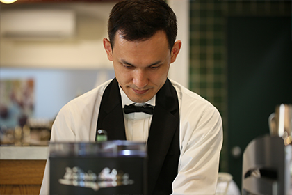 店長、リーテール事業部などを経て、現在はプロモーションサポート部に所属。ジャパン・バリスタ・チャンピオンシップでは準優勝を含む上位入賞経験があり、また現在はジャッジ等競技会の運営にも関わる。